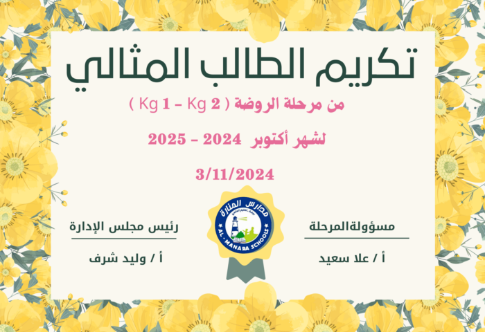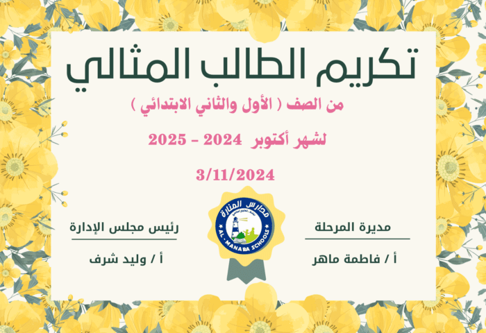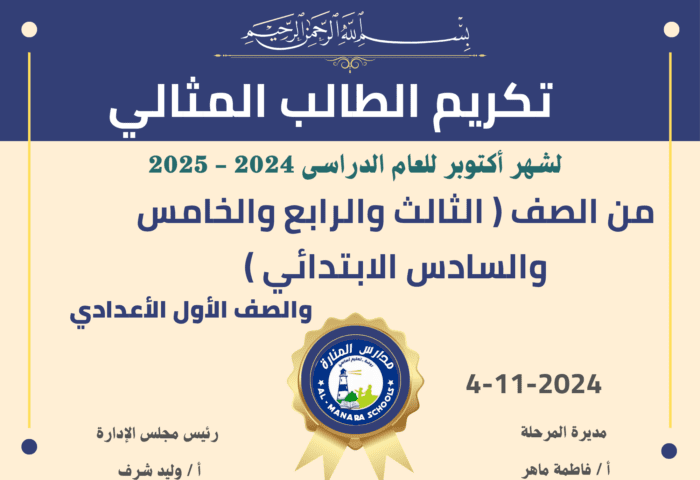 تكريم مدارس المنارة الخاصة اليوم لأوائل اختبارات نصف شهر أكتوبر من الصف( السادس الابتدائي ) والصف ( الأول الأعدادي) 👏🏼🥇❤️