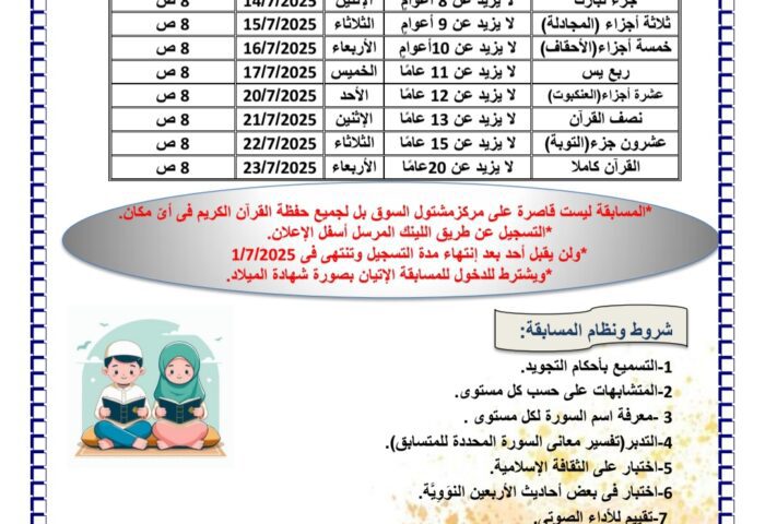 عام #مسابقة_المنارة_الثانيه_للقرآن_الكريم https://www.facebook.com/share/p/15nBxenuSr/ يوليو 28, 2025 3 comments